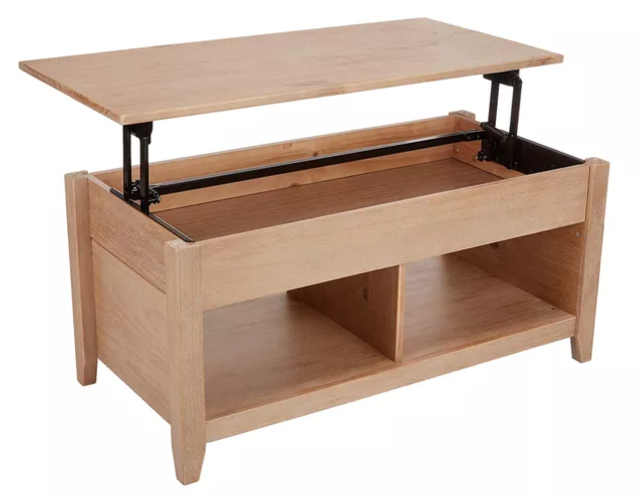 S rozpočtem? Nehledejte nic jiného než Amazon. Tento cenově dostupný konferenční stolek je vyroben ze dřeva a dodává se v černé barvě, hlubokém espressu nebo přírodním provedení. Je kompaktní, ale ne příliš malý – ideální velikost pro většinu sekčních pohovek ve tvaru L. Jednou z nejlepších věcí na tomto kousku je, že má zvedací střechu. Povrch se zvedne a mírně se rozšíří směrem ven, což vám umožní snadnější přístup k jídlu, nápojům nebo notebooku.
