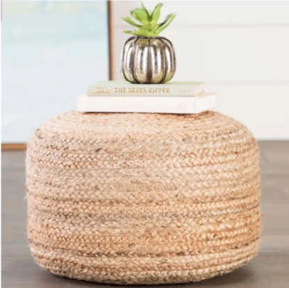 Jutepuffer er en nem tilføjelse til ethvert rum, og denne vellavede mulighed er ingen undtagelse. Denne puf er fyldt med bløde, lette styrofoambønner, og dens ydre er foret med en række flettede jute-reb. En af jutens største styrker er, at den er slidstærk og overraskende blød, så du vil være komfortabel, uanset om du sidder eller hviler fødderne på den.