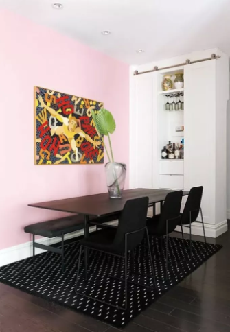 Түсқағаздар керемет мәлімдеме жасай алатынымен, екпінді қабырға үшін бояуды қолданудың еш жамандығы жоқ. «Ең үнемді жоғары әсер ету сәті үшін кескіндеме тамаша таңдау болып табылады», - деп түсіндірді Аббс. «Бюджет рұқсат етсе, аздап құрылым беру үшін әк немесе римдік сылақ сияқты жалған қабырға әрлеуін қосуға болады.»