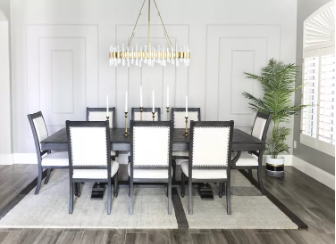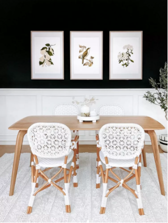 Асханаға қара түсті поп қосқыңыз келе ме? Оған барыңыз, дейді дизайнер Хема Персад. «Мен қараңғы және көңілсіз асхананы жақсы көремін, сондықтан қара түстен қорықпаңыз, тіпті ол бір қабырға болса да. Үстел басының артындағы басты нүктеге айналдыру үшін өнер туындысы мен бірегей кредензаны қосыңыз.