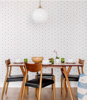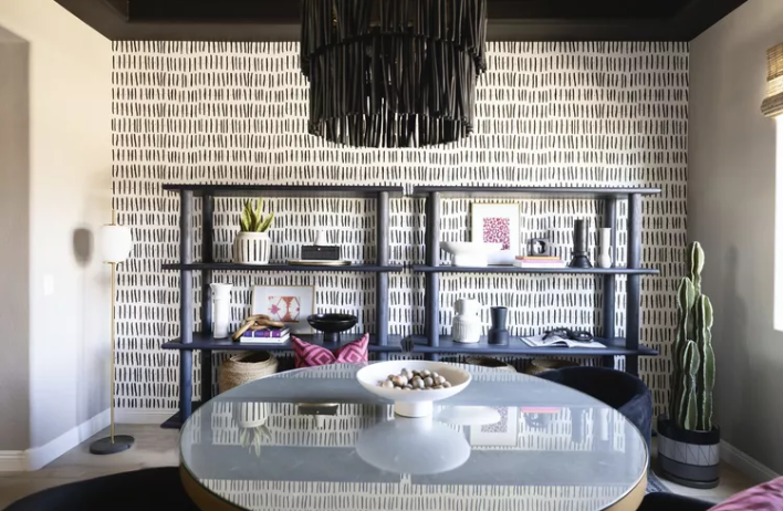 ТүсқағазжәнеБұл максималистік стильдегі асханада геометриялық дизайн жарқырайды. Егер сіз өрнектерді жақсы көретін болсаңыз, неге екі әлемнің ең жақсысын қабылдамасқа?