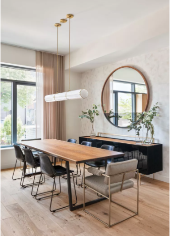 Қаласаңыз, кеңістігіңізге бірнеше айна қосыңыз. «Екпінді қабырғаға қарама-қарсы, мен кіргенде шағылысатын әсер ету үшін және бүкіл кеңістікте екпін қабырғасының түсін тартып, сабақтастық сезімін тудыратын үлкен сәндік айналар қойғанды ұнатамын», - деп түсіндірді Аббс.