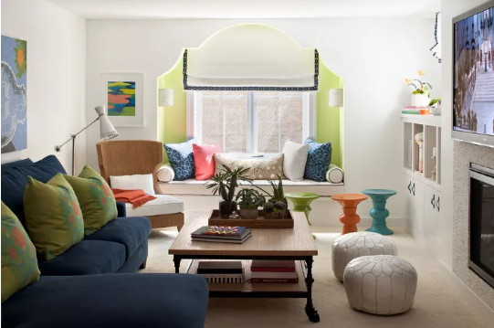 «Марракештегі Король сарайынан бастап Мароккодағы барлық сүйкімді риадаларға дейін мені аркалар мен жарқын, бақытты түстер шабыттандырды», - дейді Миннеаполистегі интерьер дизайнері Люси Интерьер дизайны Люси Пенфилд. Ол осы Жерорта теңізі стиліндегі үйдегі ыңғайлы терезе орындықты Мавриан аркаларымен Марокко рухының жетелеуімен безендірді. Ол заманауи сезіммен Марокко стиліне сәйкес келетін көптеген отыру нұсқалары бар тартымды кеңістік жасау үшін ашық түсті мүсіндік табуреткалар мен едендегі мароккалық былғары пуфтармен отыратын орынды жабдықтады.