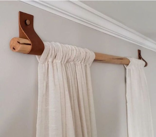 Бұл былғары шымылдық ұстағыштары кез келген терезе өңдеуіне рустикалық әсер береді.
