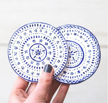 Маған бұл қолдан жасалған көк және ақ Жерорта теңізі стиліндегі фарфордан жасалған тостағандар ұнайды!