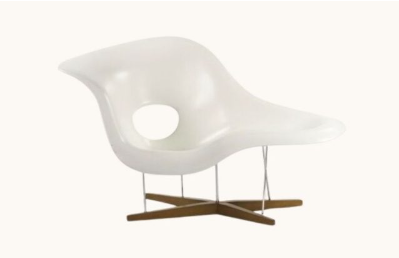 Қалыптастырылған пластмассадан жасалған шезлонг ретінде белгіліЛа Чейз, біз қарауға уақыт жұмсаған былғары демалыс бөлмесінен мүлде басқа стильде болады. Eames Molded Plastic Chaise Lounge бастапқыда 1940 жылдардың аяғында Нью-Йорктегі MOMA байқауына арналған. Орындықтың пішіні әйел формасын атап өткен Гастон Лашейздің қалқымалы әйел мүсінінен шабыттанды. Мүсінде әйелдің қисық мінезі жантайған күйде бейнеленген. Егер сіз мүсіннің орналасқан жерін қадағалайтын болсаңыз, оны Иместің көрнекті креслосының қисық сызығымен тамаша теңестіруге болады.