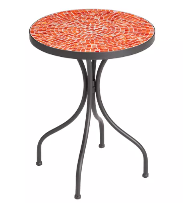 With a pretty mosaic tile design, the Cadiz Round Outdoor Accent Table brings big style and drama to even the smallest outdoor space. Due to the handmade nature of this product, slight variations in color and pattern placement between individual tables are to be expected and are part of the table’s charm. The table features weather-resistant black-finished steel legs that keep it sturdy to hold beverages, snacks, books, and more on the generously sized 16-inch table top.