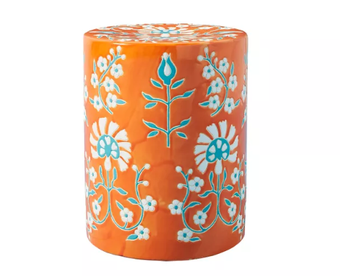 The handcrafted Mabel Ceramic Side Table is the perfect perch for margaritas, lemonade, and other summer sips. Best of all? Because this glazed ceramic table is crafted by hand, no two pieces are exactly alike. The orange and blue color scheme adds a fun pop of color to any patio, sun room, or terrace, and the unique color, texture, and pattern variations make for a whimsical, statement-making addition.