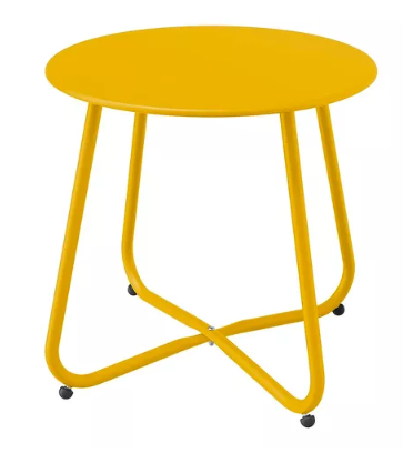 We adore this outdoor side table for its simplicity. This stainless-steel table’s sleek, minimal design adds style and function to your backyard or patio. The vibrant colors add a splash of color, and with different shades from black to pink and even lime green, it’s easy to find the right table to complement your space. They are also affordable enough to buy more than one. The compact size makes it ideal for nesting between chairs and is lightweight enough to move wherever you need. However, the tabletop is big enough to place your snacks, a vase of flowers, and even a candle.