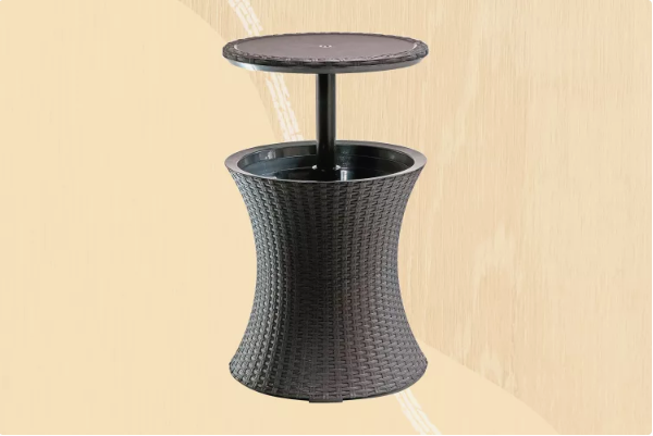 If you’re looking for a practical and super functional outdoor table, the multi-tasking Keter Rattan Drink Cooler Patio Table is for you. Although it looks like classic rattan, it’s actually made from a durable resin designed to prevent rusting, peeling, and other weather-related casualties. But the real star of this table is the 7.5-gallon hidden cooler. With a quick pull, the tabletop lifts up 10 inches to turn into a bar table and reveals a hidden cooler that holds up to 40 12-ounce cans and keeps them cold for up to 12 hours.