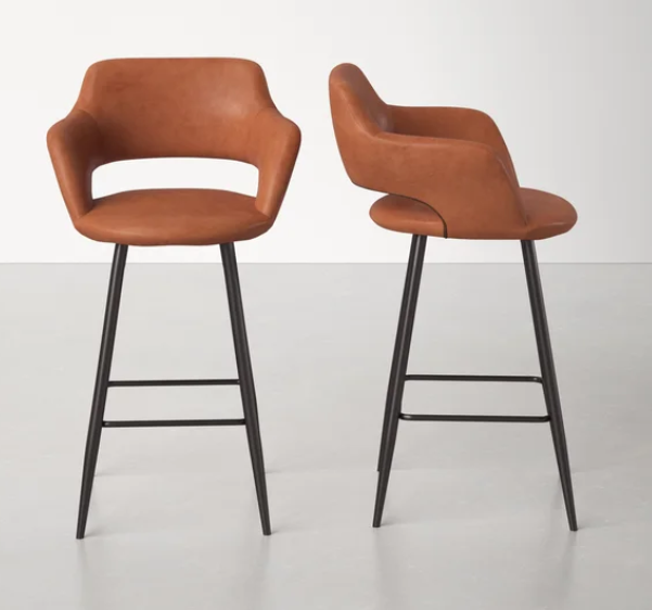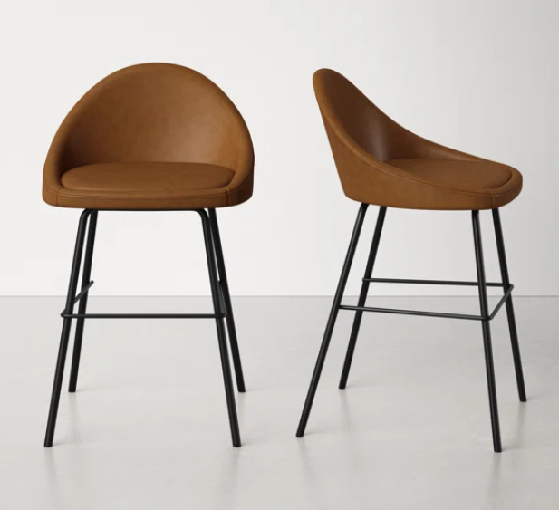 क्लासिक बाररूम सिटमा एक सुव्यवस्थित टेक, यो डाइनिंग स्टूलको आलीशान कन्टोर गरिएको सिट कम मर्मतसम्भार नक्कली छालाले बेरिएको छ र यसमा रेट्रो कटआउट ब्याक छ। बिहानको कफी वा साँझको ककटेलहरूमा तपाईंलाई स्थिर राख्नको लागि यो बिल्ट-इन फुटरेस्टको साथ टेपर्ड स्टिलको खुट्टामा टिक्छ। दुईको सेट।
