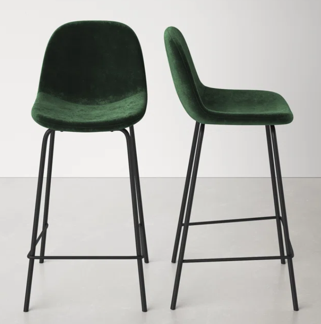 तपाईंको बिहानको कफी र साँझको ककटेलमा थोरै कुसन थप्नको लागि यो डाइनिङ स्टूलको कन्टोर गरिएको बाल्टी सिट प्याड गरिएको मखमलमा बेरिएको छ। तल्लो पछाडि र खुला धातुको आधारले दृश्य रेखाहरू खुला राख्छ, जबकि निर्मित फुटरेस्टले स्थिरता थप्छ + प्लास्टिक ग्लाइडहरूले तपाईंको भुइँहरू सुरक्षित गर्दछ। दुईको सेट।