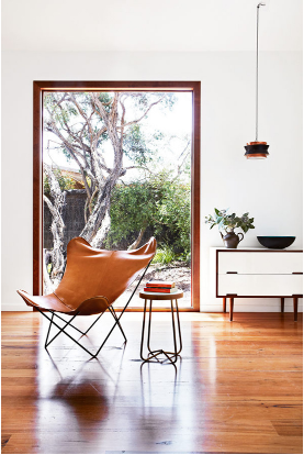 Tan leather butterfly chairs are a great way to get a casual-chic style.