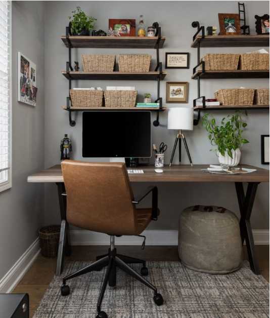 Industrial home offices are a popular decorating theme for the at-home office. As more and more people start working from home due to the pandemic, many families are starting to think about redesigning their home office space.