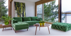 Color can feel like a big commitment, especially in places where it’s time and/or budget consuming to change it or on pieces of furniture that you expect to keep for a significant amount of time. That’s why when we’re planning out an interior space many of us often find ourselves shying away from the blue sofa or the pink chair (to say nothing of the colorful walls). But even though the commitment can be intimidating, the fact of the matter is that when the space that we’re designing is intended to have minimal design elements and simple furniture pieces, the color becomes more important than ever. When selecting a bright color sofa for your room that will still give you a modern look, plan to select accessories with a more neutral color palette to keep it simple instead of becoming something more boho. Bring in colors like white and shades of gray paired with materials like marble and solid walnut so that the show stopper remains the colorful sofa, and everything else simply accentuates it. Even if you do want to go the generally safer route by sticking with a gray or cream-colored sofa, the lines of most mid-century furniture pieces will make a huge impact on your space.
