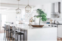 Bryan Johnson, CEO of Shades of Light, echos that though last year was punctuated with a dramatic use of color throughout the kitchen, this year is all about keeping things calming.