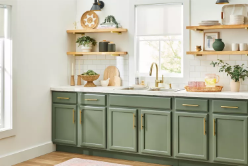 While blue may be the color of choice to usher in a more calming kitchen space, green is also having a moment. Crockett says our move toward warmer, earthy tones, is the result of the design industry’s biophilic influence.