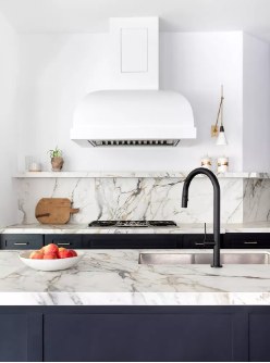 “The slab is often the same material as the countertops, giving the kitchen graphic veining and interesting details—it really creates a striking focal point, plus, it’s easy to wipe clean,” he says.