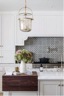 The real drama in the kitchen will show up in oversized counter slabs, waterfall edges, and big islands, according to Johnson. Think: bold patterns in the stonework complemented by low-hanging pendants in colorful patterns.