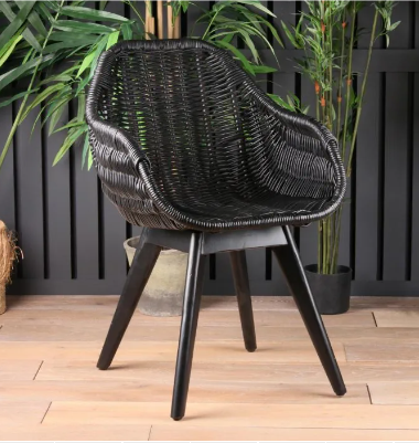 - Entirely handcrafted using natural rattan, the chair is supported by simplistic tapering legs made from teak. It is available in a black or natural finish which allows you to suit it to your space.