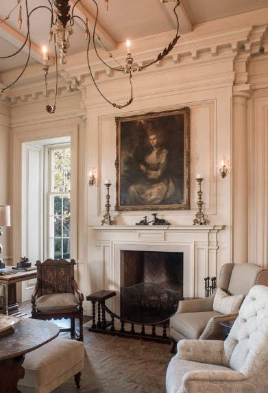 Opt for furniture upholstery in light colors like cream, beige, and gray. Vintage furniture pieces can also fit in. Accessories should be limited to family heirlooms. Natural elements like wood, leather, and brass take center stage.
