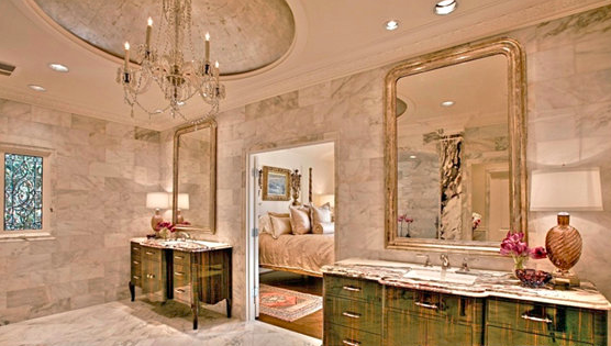 This stately elegance travels to every room of Italian style home, including the bedroom. Take a look at this elegant boudoir in the picture; it’s elegant and saturated in Italy. If you want a rich and colorful luxury look, this is a good example.