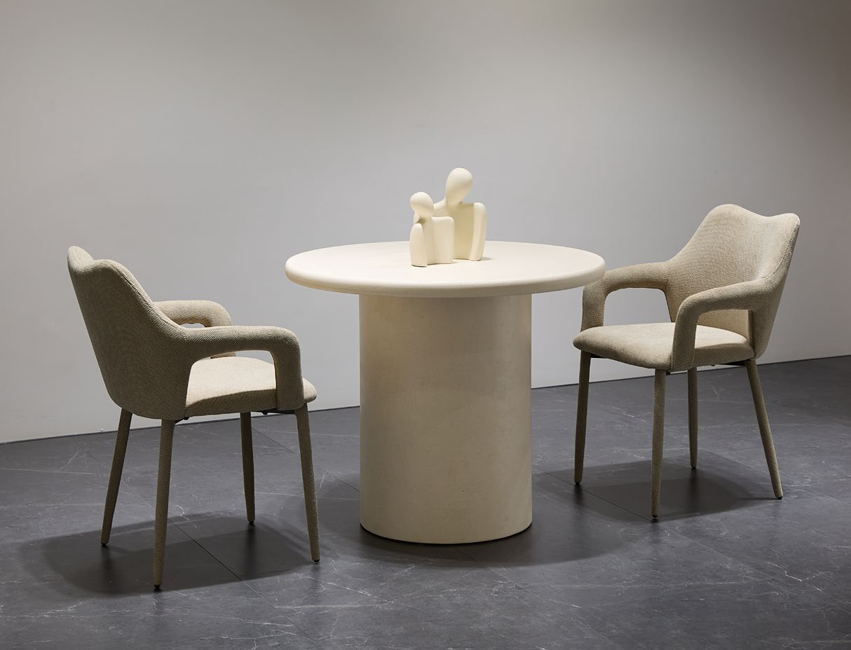 Crafted from high-quality MDF with a custom art laquering finish (our signature process: a multi-step spray application that delivers a velvety, scratch-resistant matte surface), this table balances sleek modernity with quiet durability. Its cylindrical base and seamless round top create a focal point that feels intentional and inviting — perfect for morning coffee, dinner parties, or even a home office setup.