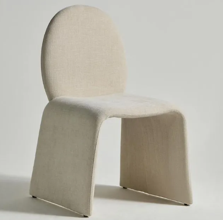 - A minimalist piece sourced exclusively for WSG, this design-led beige dining chair comprises a simple arch and circle shape, making the seat and backrest respectively.