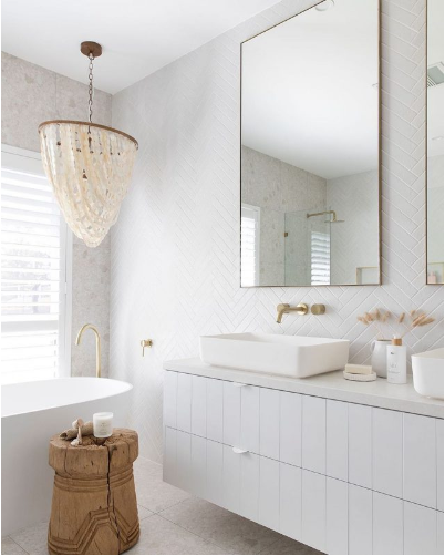 Aside from that, the bathroom has wood vanities with stone bench-tops as well as white walls and ceilings. If you want to add some depth to the space but keep the rest of the decor basic, you may do it by using textured tiles. Add warmth and texture in a variety of ways. Use jute rugs and woven baskets as well as draped greenery such as devil’s ivy and pothos plants. In many modern seaside bathrooms, the walls are painted white, the fixtures are chrome, and the furniture is made of whitewashed wood. This is what a modern beach bathroom looks like!