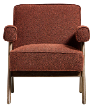 Lorenzo Accent Armchair – Rust Boucle Fabric Seat – Brushed Wood Frame