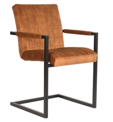 Kursiga qolka cuntada Milo kursi qolka cuntada oo aad u qurux badan oo qurux badan oo midabka ocher velor ah.Kursiga raaxada leh waxaa suurtogal ka dhigaya kursiga qaabaysan iyo cududyada gacanta oo hubiya in fiidkii dheer ee qadada ay noqoto xaflad!