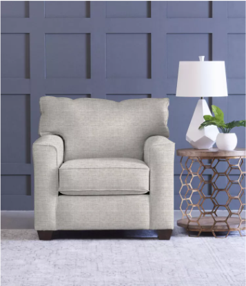 Kursigan ballaaran ee 39-inji ah ee jirkiisa santuuqa ah iyo cududaha gacmaha ballaaran ayaa bixiya qol badan oo lagu dhejiyo oo si raaxo leh loogu fadhiisto. Iyadoo kursigu aanu ku fadhiyin ama aanu la iman ottoman, barkinnada fiber-ka ka buuxo ee synthetic-ga ah waa kuwo cufan laakiin weli taageeraya. Qoryaha adag ee looxa ayaa ka dhigaya kursigan mid aad u adag oo u adkeysanaya isticmaalka muddada dheer, barkinkuna waa mid la saari karo.