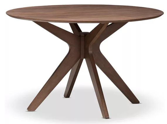 Kuwa qayb ka ah alaabta guriga ee qolka cuntada ee alwaax waxay jecel yihiin miiska Baxton Studio Monte, gabal dib-u-dhiirigelin leh oo leh lugaha rucubka alwaax adag oo leh olol yar iyo dusha sare ee walnut. Cabbiraadda 47 inches dhexroorka, waxaad awoodi doontaa inaad si raaxo leh u fariisato ugu yaraan afar qof, taasoo ka dhigaysa mid aad u fiican wakhtiga cuntada.
