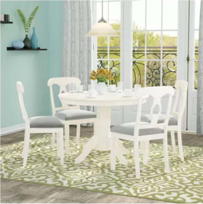 Haddii aad raadinayso naqshad hal-iyo-la sameeyay, ha moogaanin Charlton Home Adda Dining Set. Qalabkan shanta qaybood ka kooban waxaa ku jira miis wareeg ah iyo afar kuraas oo iswaafaqaya, marka waxay diyaar u noqon doontaa in si buuxda loo isticmaalo marka ay timaado.