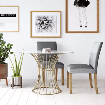 Si loo eego muuqaal sare, kuma khaldami kartid miiska cuntada ee Orren Ellis Krokowski. Ka samaysan bir, naqshadda cad iyo dusha marmar ee dusha sare waxay ku dari doontaa dareen casri ah qol kasta oo wax lagu cuno.