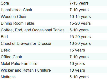 Cimrigu cimriga qaybaha badankoodu way kala duwan yihiin dhawr sano waxayna si wayn ugu xidhan tahay agabkii asalka ahaa ee la isticmaalay iyo dhisidda qaybaha, cadadka isticmaalka maalinlaha ah, iyo xadiga daryeelka la qaatay marka la isticmaalayo alaabta guriga. Sariirta qolka qoyska oo ay ku jiraan caruur yaryar, dhalinyaro, iyo xayawaan badan ma sii jiri doonto ilaa iyo inta mid ka mid ah qolka fadhiga ee rasmiga ah.