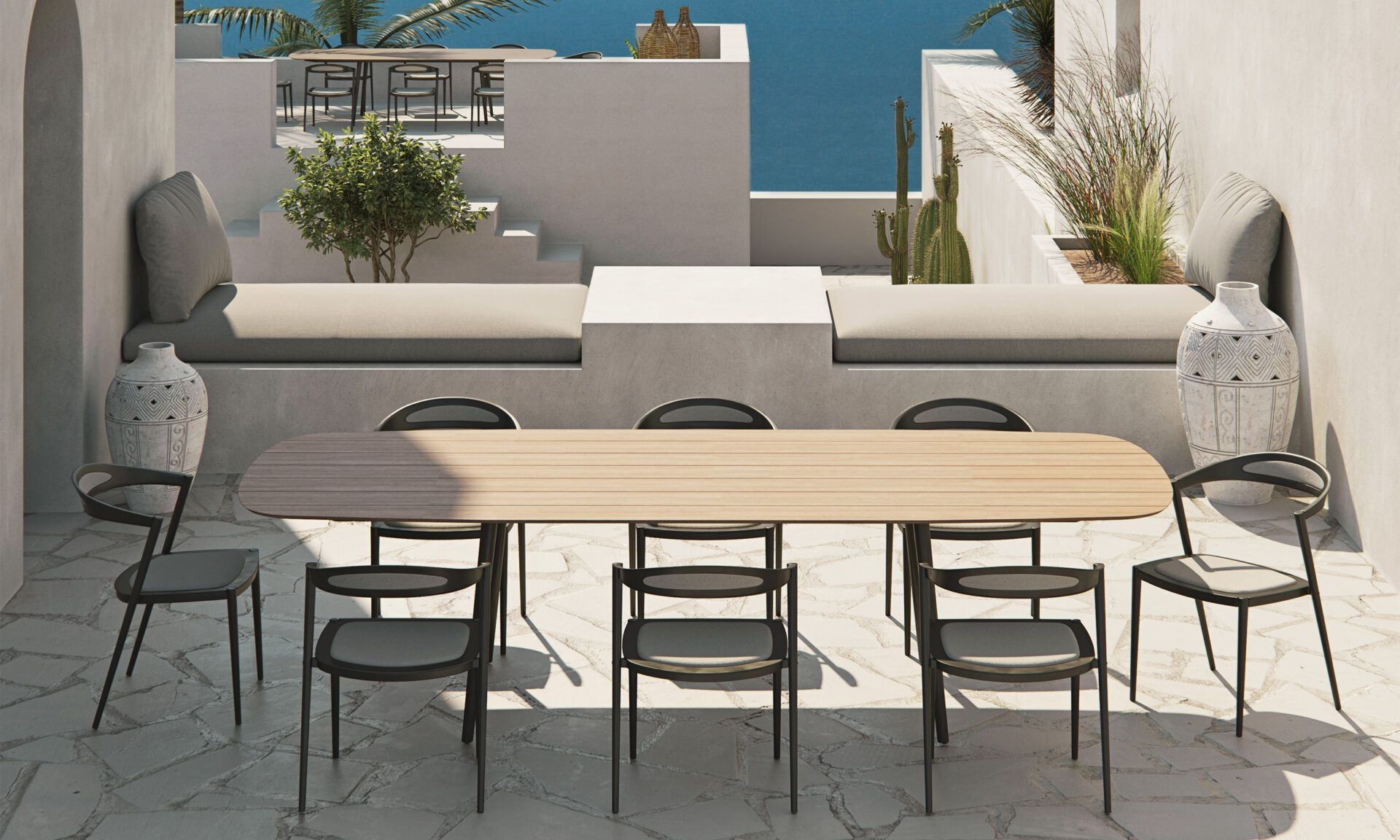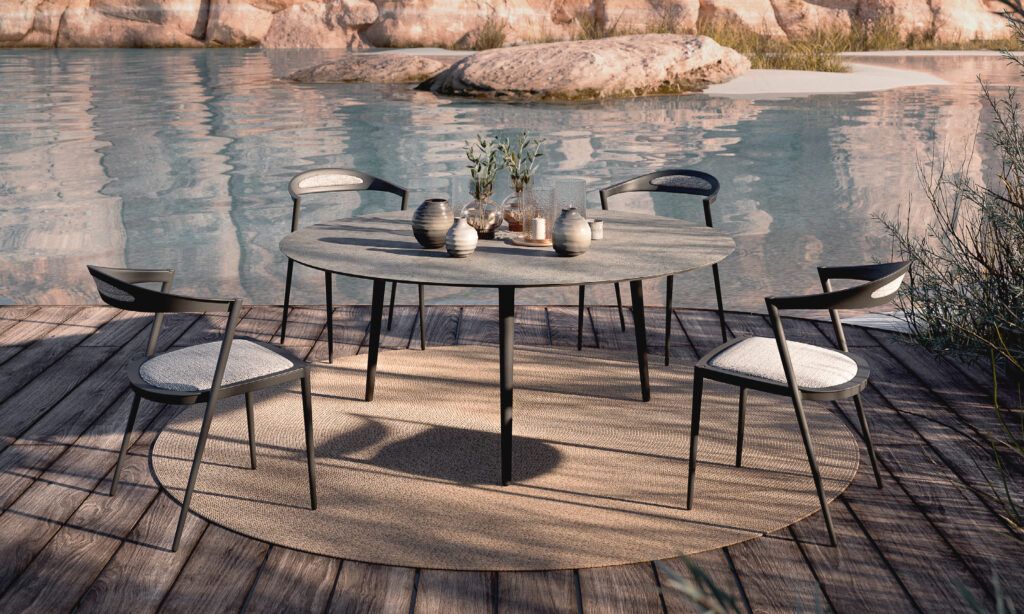 Koleksioni Styletto feston shkëlqimin e thjeshtësisë dhe shkakton një ndjenjë sqimë dhe qetësie. Tonet natyrale dhe linjat e buta të valëzuara shkrihen së bashku në një ninullë lirike. Nga agimi deri në muzg, karriget e rehatshme ofrojnë kombinimin e përsosur me sfondin e afreskeve, duke reflektuar shkëlqimin e shkëlqyeshëm të diellit në mesditë të lartë ose shkëlqimin e butë rozë dhe vjollcë të muzgut. Pjesët elegante të kompletit tonë të jashtëm burojnë qetësi, duke ju ftuar të bëni një hap prapa nga vorbulla e jetës së përditshme dhe të shijoni momentin. Përjetoni mrekullinë e luksit të lehtë dhe dizajnit elegant. Lejo që koleksioni Styletto i Royal Botania t'ju vjedhë në një udhëtim që thërret pastërtinë e jetës së ishullit.