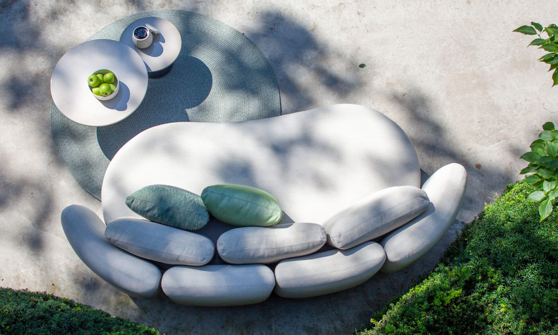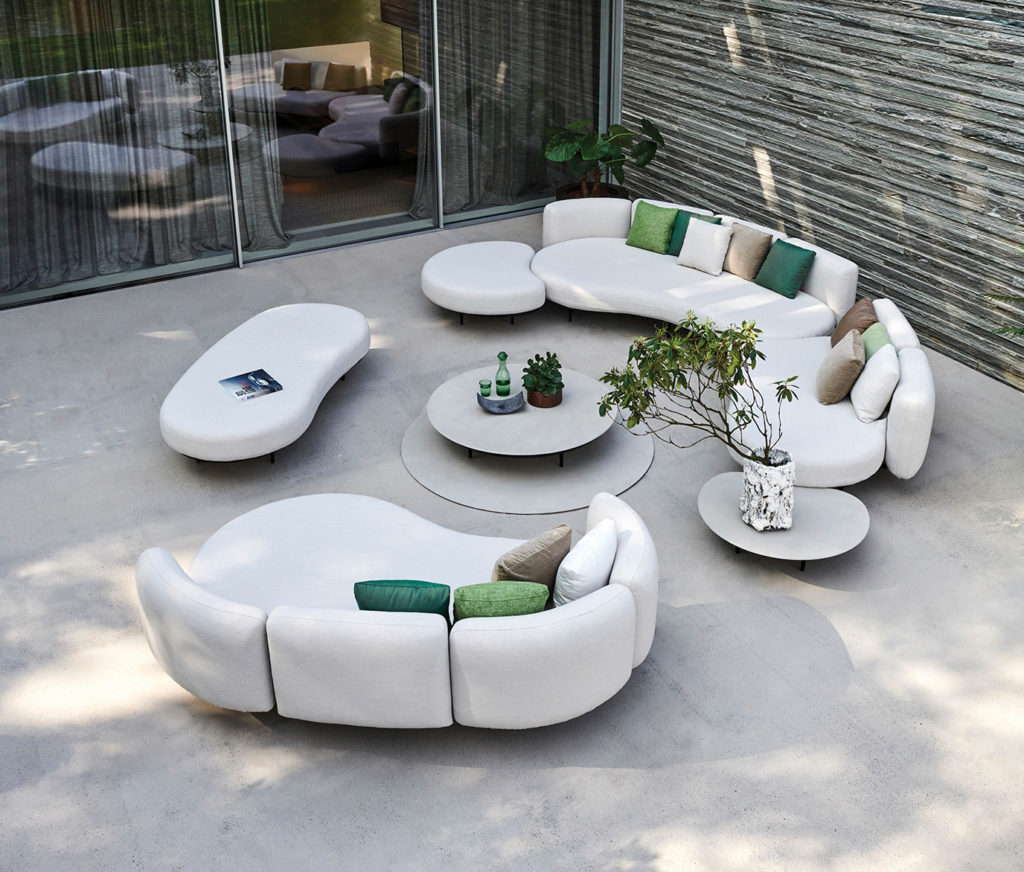 Bilang resulta, ang mga posibilidad ng lay-out ay walang katapusang, pati na rin ang mga kumbinasyon ng kulay ng tela at ceramic na pang-itaas, na nagbibigay-daan sa iyong i-customize ang iyong Organix lounge set sa iyong mga personal na kagustuhan.