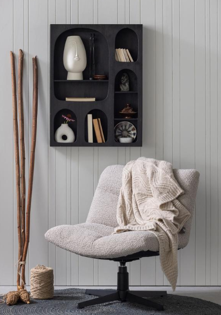 Bu güzel, son derece konforlu Vinny döner koltukla kendinize istediğiniz yöne dönme özgürlüğünü verin.Vinny, döner koltuğun bakımını çok kolaylaştıran süper yumuşak %100 polyester buklet kumaşla döşenmiştir.Vinny'nin dört ayaklı ve düzgün bir dönüş sistemine sahip siyah metal bir tabanı vardır.Kendinize bir anlık keyif verin!