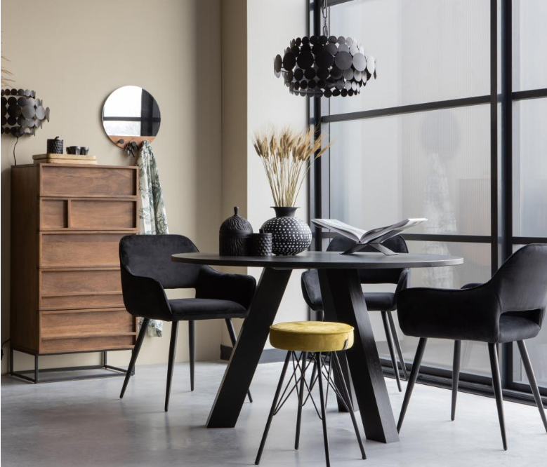 Bu zevkli yemek odası sandalyesi Jelle, çağdaş ve konforlu bir modele sahiptir ve siyah renkte hoş, kadifemsi yumuşak bir kumaştan yapılmıştır.Bu yemek odası sandalyesi son derece rahattır, hoş kol dayanaklarına sahiptir ve yemek masalarıyla iyi bir şekilde kombine edilebilir.Siyah metal çerçeve sağlamdır ve arkadaki girintili çanak oturak ferah bir etki sağlar.Bunun gibi bir sandalye çekici ve modaya uygun.Sandalyenin oturma yüksekliği 49 cm, oturma derinliği 45 cm ve oturma genişliği 42 cm'dir.Yerden kolçakların üstüne kadar olan yükseklik 65 cm'dir.