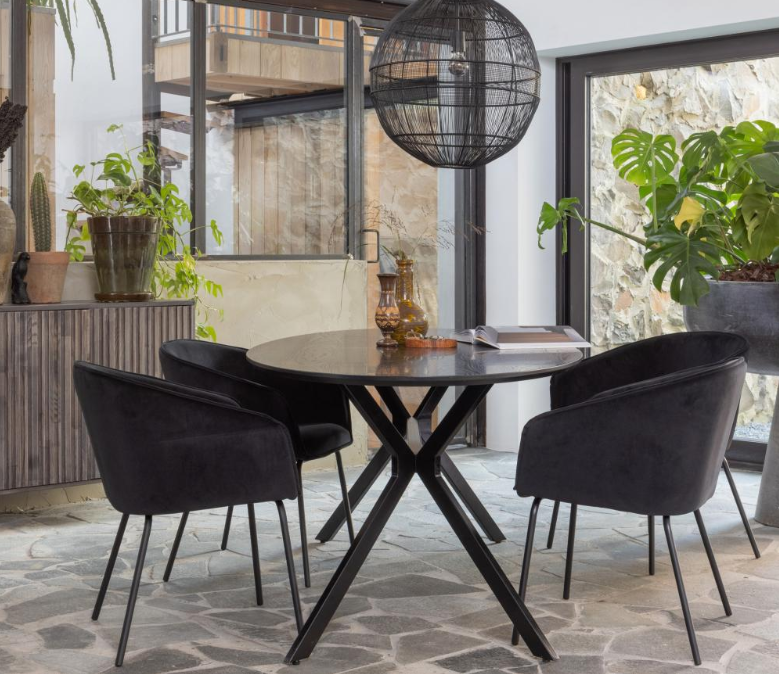 Yemek odası sandalyesi Sien, modaya uygun bir yemek odası sandalyesidir.Sandalyenin oturma yeri siyah renkte kadifemsi yumuşak kadife kumaşa sahiptir.Ve çelik taban mat siyah toz kaplamaya sahiptir.Tasarım, renk ve malzemelerin birleşimi bu yemek odası sandalyesi Sien'e sade bir görünüm kazandırır ve birden fazla iç mekan stilinde uygulanması kolaydır.Ayrıca Sien sandalye çok rahattır ve rahat kolçakları onu oturmak için rahatlatıcı bir yer haline getirir.Bu sandalyenin oturma yüksekliği 47 cm, oturma genişliği 45 cm ve oturma derinliği 45 cm'dir.Kol dayanağının yüksekliği 63 cm'dir.