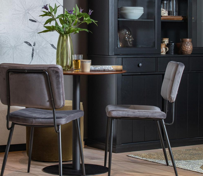 Yemek odası sandalyesi Amber, samimi ve modern bir dokunuşa sahip şık bir sandalyedir.Amber'in çanak koltuğu, rahat kol dayama yerleri vardır ve oturması çok rahattır.Yemek masanızda yer alan bu sandalyeler sayesinde artık akşam yemekleri ya da arkadaşlarınızla akşam yemeği randevuları sorun olmaktan çıkacak, en azından akşamı rahat geçireceksiniz!Yumuşak, yuvarlak şekilleri ve kadife kumaşının sağlam tabanıyla birleşimi nedeniyle Amber, yuvarlak bir yemek masasında çok güzel görünür ancak Amber, dikdörtgen bir yemek masasına da samimi bir atmosfer katar.Sandalye gri renkte sağlam kadife polyester kumaşla döşenmiştir ve bacaklar mat siyah toz boyalı çelikten yapılmıştır.Bunu evdeki diğer mobilyalarla rahatlıkla kombinleyebilirsiniz.